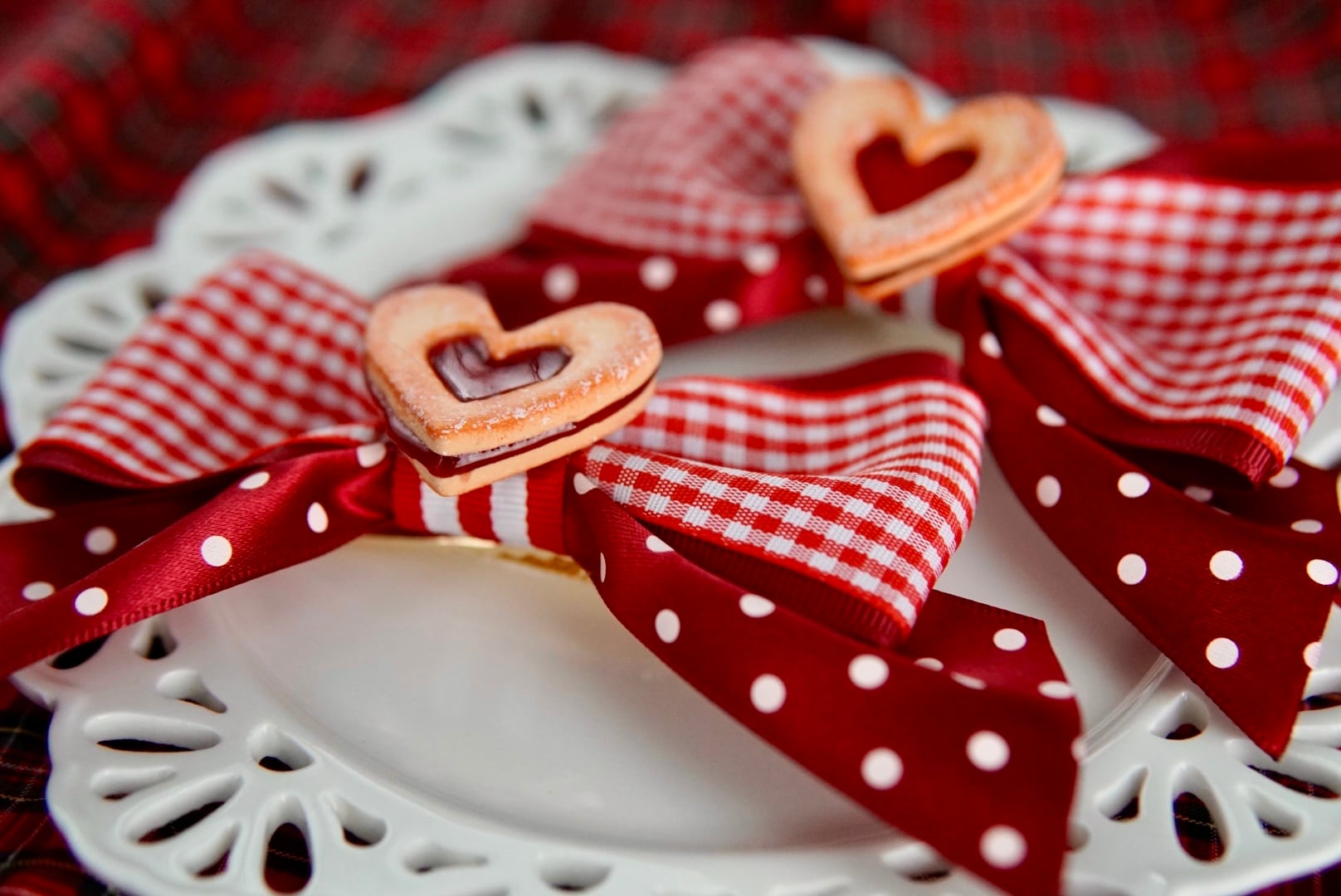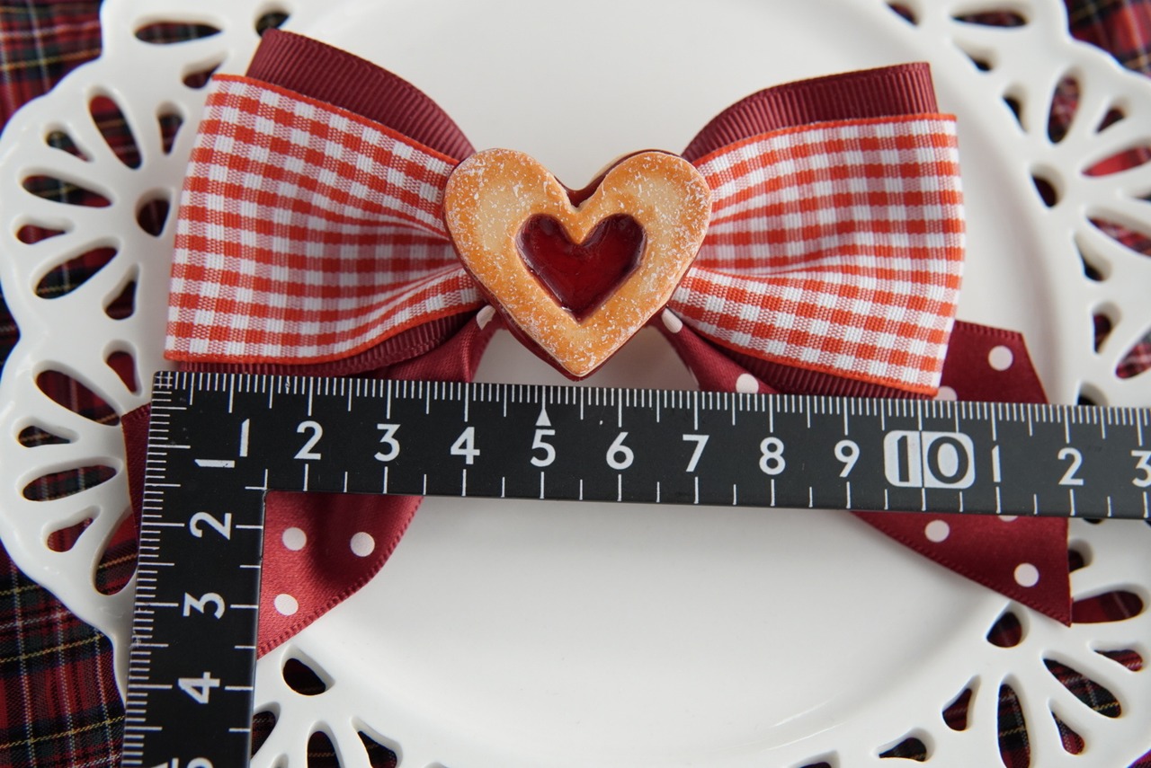 リンツァーハートがついたギンガム&ドットリボンのクリップ